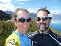 first short bike check-out ride. Sadly Christchurch was still in rather bad shape from earthquakes (Sept 2010, Feb 2011) and aftershocks. Most of the core downtown area remains cordoned off, buildings are still being demolished, and the latest word while there was that the fine Anglican cathedral, severely damaged, would not be rebuilt. Such a shame. Some businesses at least were able to re-open, with creative use of large shipping containers (think a container ship, or what a semi truck-trailer hauls...) in a pedestrian area. Subsequent days we cycled steadily down the west coast of the South Island, slapping a few sandflies (no-see-ums) en route. We had a couple of nights at the Franz Josef Country Retreat outside the town of Franz Josef and the FJ glacier. On our "free" day in Franz Josef we enjoyed a morning boat trip on the Okarito Lagoon for a little birding, then in the afternoon cycled over to the glacier trailhead parking lot and walked the trail through lovely forest then onto the river valley to nearly the glacier's edge. (Well, Robert never got out of the forest; he was enjoying the birding too much.) We also visited a Kiwi Wildlife Center...not a home for the originally-named chinese gooseberry fruit, but the native flightless bird (see photo above) which is seriously threatened by introduced predators possum (different than that in the Americas) and stoat. Difficult to see in the wild - low numbers and they're nocturnal - we were happy to see them in the center and hear about the breeding/release program. After leaving Franz Josef, we cycled on to the Lake Moeraki Wilderness Lodge, a beautiful property surrounded by beautiful native forest. Liza cycled through a brief soaker rain shower to get there after Robert wisely got into the van after our lunch at a salmon farm. We had another free day at Lake Moeraki, which we spent birding (great views of Fiordland Crested Penguin on the nearby beach!) and hiking, while others enjoyed kayaking and other activities, including doing laundry. :-) From Lake Moeraki we had a brief shuttle along dramatic cliffs above the Tasman Sea, and began cycling again along the clear blue Haast River traveling east. We optimistically decided we would do the difficult Haast Pass, despite warnings that it was a 17% grade. The worst part of the climb was a 2-3 km stretch, after which it "levelled out"...and it did...but I was walking well before my Garmin bike computer topped out at 19%. Robert fared much better, although he had to make a couple stops and hoof it a little bit himself. Our last day of cycling took us through Tarras (where we got to hear all about Shrek the merino sheep, who once sheared produced nearly 50 lbs of wool!), and eventually made it to Queenstown. We made a stop en route to see bungy jumpers, including one of our group, Erin! We were content to watch. The cycling trip officially ended in Queenstown with a lovely dinner on the Lake Wakatipu shore. We had a couple extra days in Queenstown following that, where we enjoyed the gondola ride up a nearby peak with spectacular views of the city and the Remarkables mountain range. Up at the top too we had a few runs on the "luge" - not a real lay on your back and hurtle downhill experience, but a wheeled sled on a couple of courses where you could get up some decent speed. It was fun in any case. We also enjoyed a long morning forest/lakeshore walk with a local guide, and had fun deciding which of the either 60 or 120 restaurants in town (depending on who you asked) we'd go to. We did have a nice afternoon at a place called Wine Tastes, where we sampled many NZ wines plus a few from Australia. (Nice system - the bottles were temperature-controlled and counter-filled with argon to keep them from going bad, in an interesting setup that dispensed the desired amount of wine.) Add some local NZ farm cheese, bread, and fruit, and it was a most pleasant time. We also enjoyed our Fergburgers - "the best burger in the world" - well don't know about that, but Robert's venison burger and my lamb burger were huge, very tasty, and quite messy! There are six pages of trip photos linked below; the Home link takes you back to this page. The GPS link will take you to a map of the first day of cycling on the Garmin Connect website; click Next on the Garmin page to view the subsequent days. |