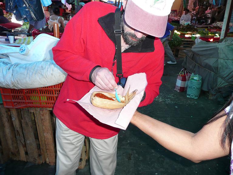 Robert samples a tamale