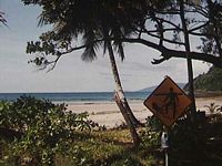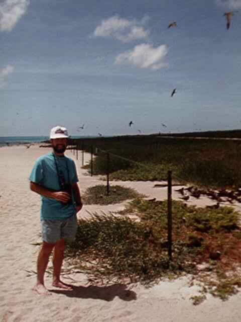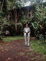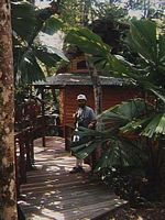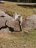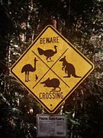 Daintree was 4km across and 30 ft higher!) We spent several days at the beautiful Coconut Beach Rainforest Resort at Cape Tribulation, attempting to 4WD drive further north on the road to Cooktown one day (no go), birding, eating...ever had a hamburger with egg and beets on it? We did. Liza also had the enjoyable :-) experience of having a spectacled flying fox crawl onto her head (think really big bat) and lick the perspiration off her forehead. (And she couldn't even get Robert's attention to take a photo, either...) From Cape Tribulation we went on to Mossman, and the next day had the pleasure of birding with Chris Dahlberg on the Daintree River. (Notable bird was the Great Heron, whose call sounded frankly like a very large person throwing up.) We also enjoyed a day trip into the interior at the Chillagoe Caves, limestone caverns with bats, not to mention many bugs hitting the windshield on the drive "home". From Mossman it was back to Cairns - where a spectacle of flying foxes in the early evening made us think of Batman as the silhouettes crossed in front of the full moon - then on to Sydney for a few more days. It was in Sydney that we broke down and bought ourselves a Drizabone short coat that has since seen much use from the both of us. We enjoyed day trips out to the Hunter Valley for wine, and Royal National Park, before flying home to Los Angeles. Below are a few photographs from the trip...again older camera, not the greatest...and click here for Liza's trip journal. |