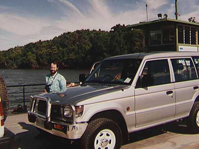 We packed up around 10:00, mailed my postcards in Kuranda, came back to Cassowary House to pay off our debt (had to leave the A$150 with a dreamy-eyed, baby-toting hippie, great) and then off! to the long-awaited, semi-feared trek up to Cape Tribulation. We traded in our two-wheel drive car for a big, shiny Mitsubishi Pajero 4WD, complete with gyroscope, high clearance, heavy suspension, and best of all, a spiffy, polished chrome "Roo Guard". Way cool!