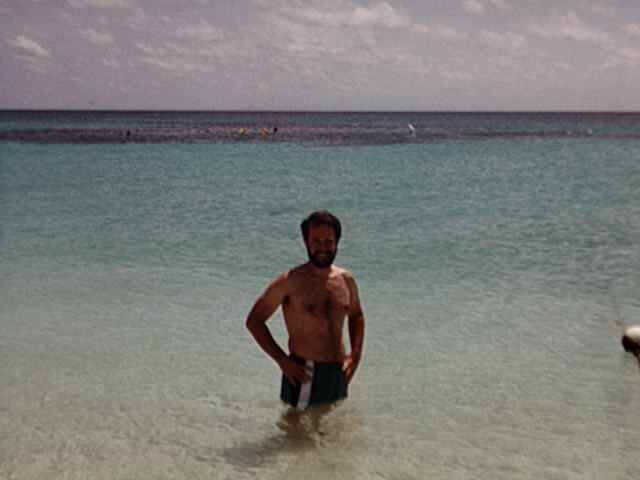 Totally spent, we went back to the catamaran. Robert gulped down his Victoria Bitter beer and went back to shore for a short, guided bird walk; I stayed on the cat and sipped my beer more slowly, to recover from the sun- and water-induced lethargy. Robert in his turquoise Arizona Nature Conservancy t-shirt and turquoise shorts was very visible from the cat; I watched him through the binocs as he took part in the "tour".