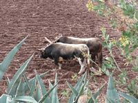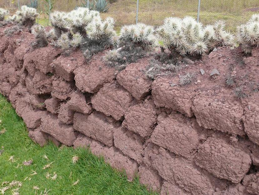 Adobe is the building material of choice; a wall topped with cholla says "keep out" |