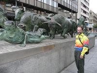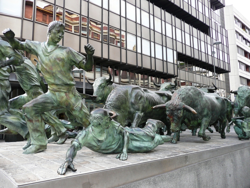 El Encierro - the greater-than-life-size monument to the running of the bulls |