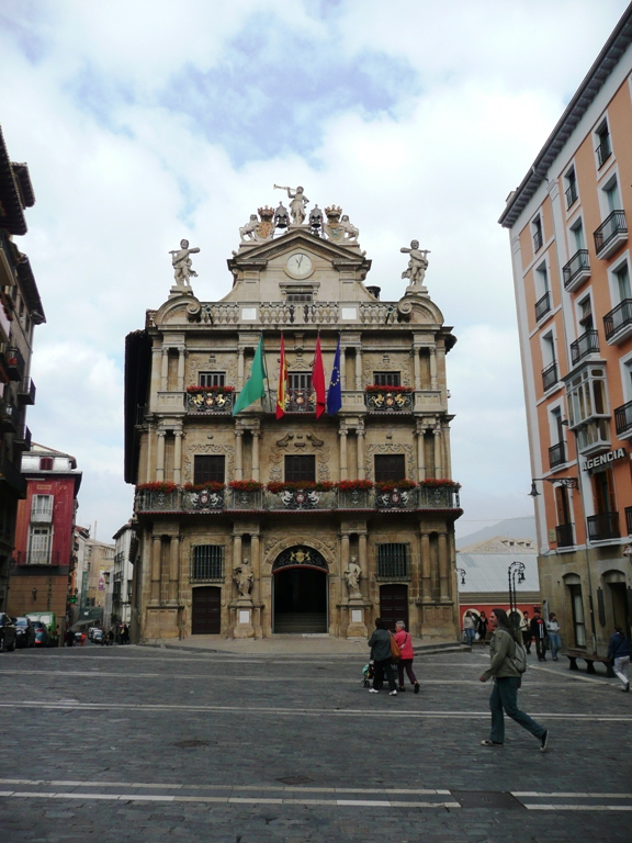 The Ayuntamiento (city hall) in Pamplona - the bulls come running up the street to the left |