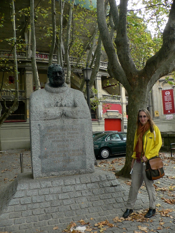 Robert at the monument - the figure at left about to be gored is the monument's sculptor |