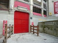 The red door the bulls go through, where they meet their unhappy fate |