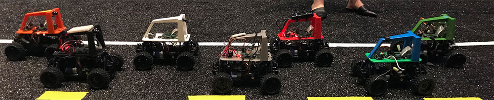 This year’s RoboCar Rally was a nonstop thrill-fest. Seven great racers competed in 12 heats, with one moving ahead (toward the left) in the rankings and one moving behind (toward the right) from the previous finish. You might want to keep track of which car did what in each heat. Enjoy the race!