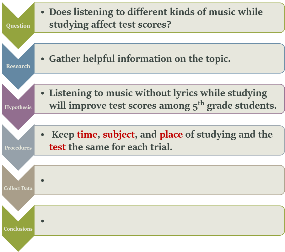 In the example to the right, if both time and type of music were changed, the scientist would not know which one affected the test scores.