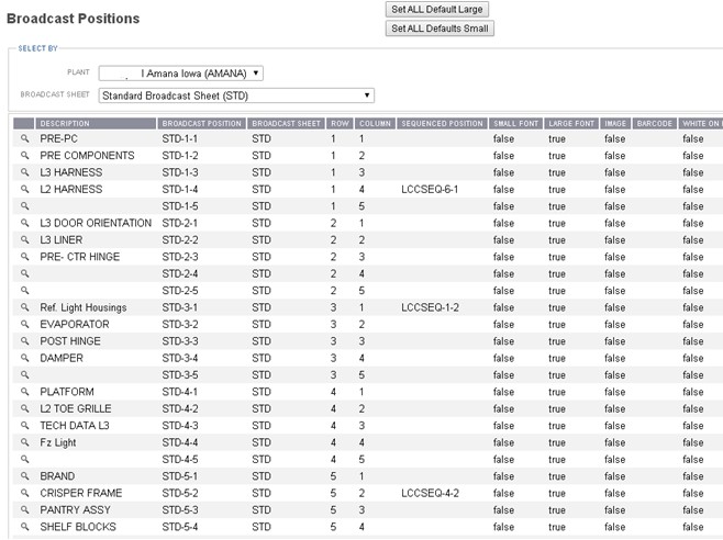 Product and Process > Bills of Materials > Broadcast Positions.
