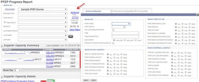 The Advanced link on the PFEP Progress Report provides the user with many additional filters.