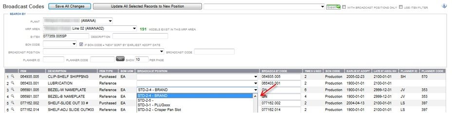 In order for a broadcast code for an item to appear on a broadcast sheet or be displayed on a monitor, a broadcast position must be assigned to the item.