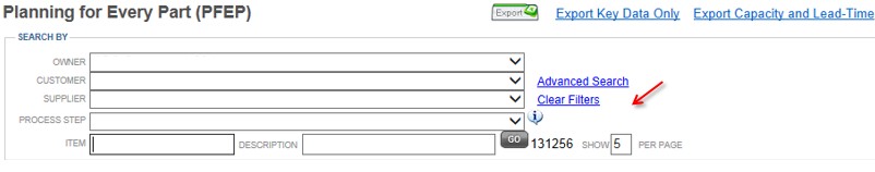 Some reporting screens allow you to clear just one filter at a time. See the example below.