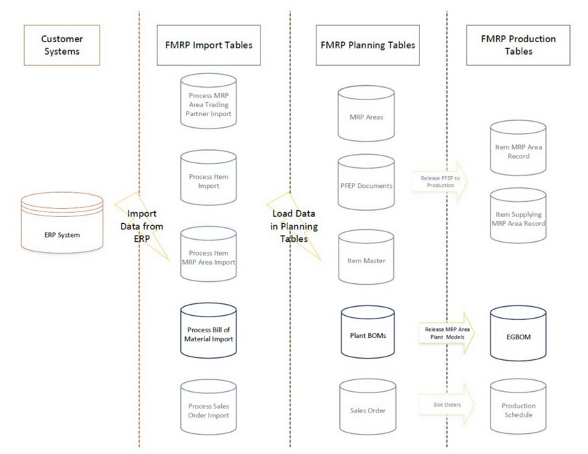 The process of creating EGBOM records requires using the MRP Area Plant Models session to release plant bill of materials to the EGBOM table. By releasing the plant BOMs to the EGBOM table, we are defining the specific parts needed to build each specific model. EGBOM records can be created using the MRP Area Plant Models session or the MRP Area Models session. The session you will need to use will depend on how your BOM has been imported and stored in FMRP. If you are not sure, please contact an Administrator for assistance.