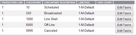 A checkpoint defines the progress of a production order or work-in-process (WIP). Checkpoints define the life of an order on the line, providing status, and associating tasks that must be performed at certain points along the line. Checkpoint 1000 typically signifies the start of the line. Checkpoint 6000 typically signifies the end of the line and Slot 1.