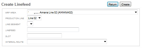 A linefeed is the assigned location where items are applied on (Application Linefeed) or delivered to (Logistics Linefeed) the production line. A workstation may have multiple linefeeds. Linefeeds may also be created from the import of master data.