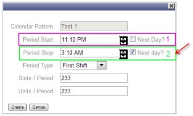 The period begins at 11:10 PM and ends at 3:10 AM. Because the period straddles two days, the