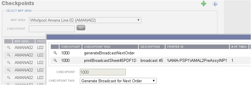 To automatically broadcast the next order, assign a task to checkpoint 1000 "Generate Broadcast Next Order". Each time a unit is scanned at the start of the line (Checkpoint 1000) another order will be broadcasted.