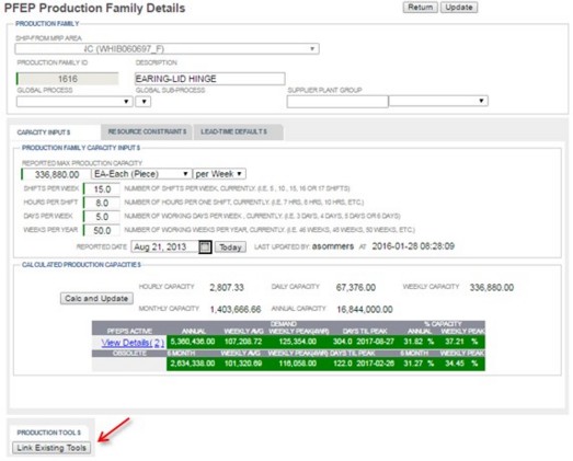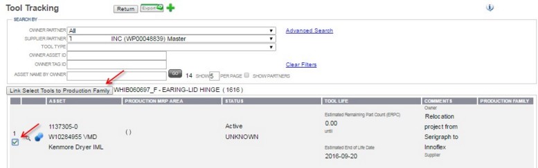 Tools used by suppliers can be imported into the system from a master tool asset file. Once the tool has been identified as being located at a particular supplier, the supplier is then required to define which tool is being used by which production family.