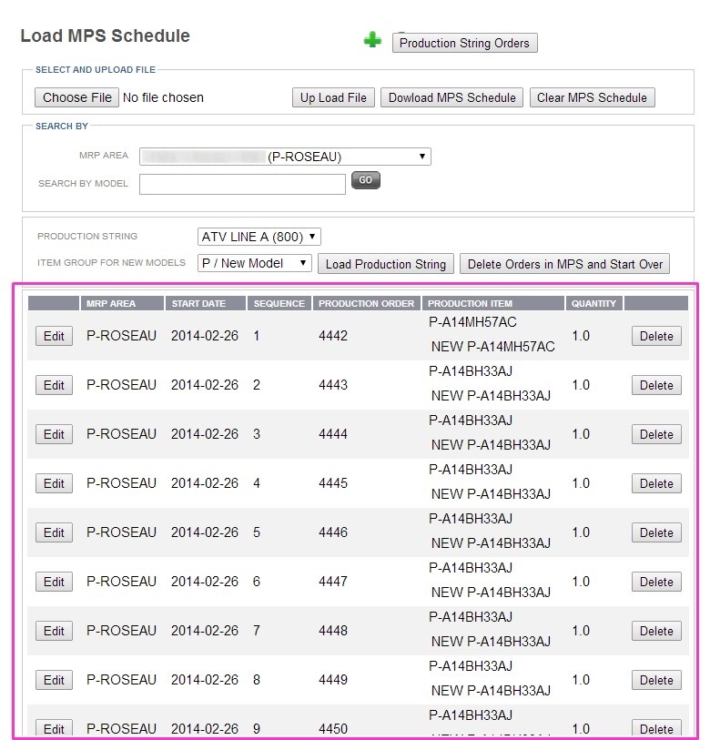 Loads the selected production string with the records in the Load MPS Schedule table |