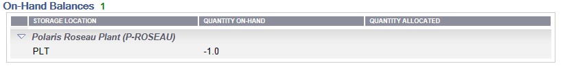 The On-Hand Balance section of the Stock Status Report shows the storage information for the item, the quantity on-hand, along with the quantity allocated. The number on-hand will appear in green next to the title of the section.