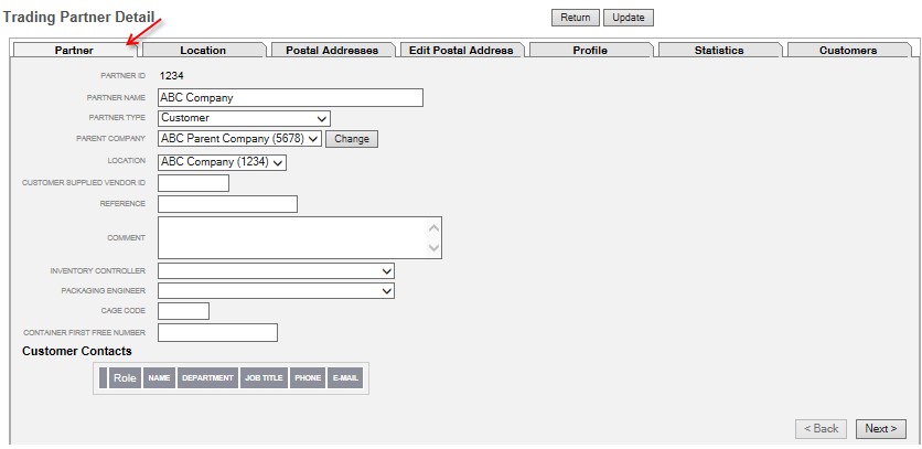 Using filters, access the appropriate Trading Partner from the Trading Partner list.