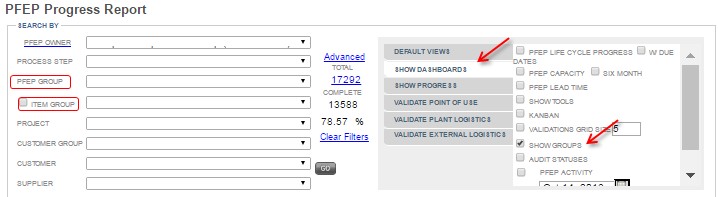 By selecting Show Groups, additional filters will appear on the dashboard. These filters include:
