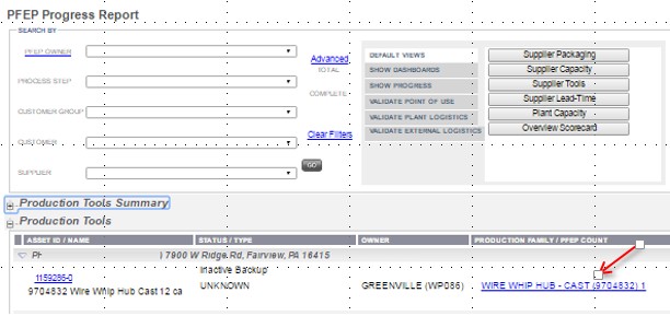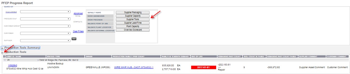 The Production Tools section of the dashboard provides details regarding a tool’s projected end of life date based on total part demand of the production family.
