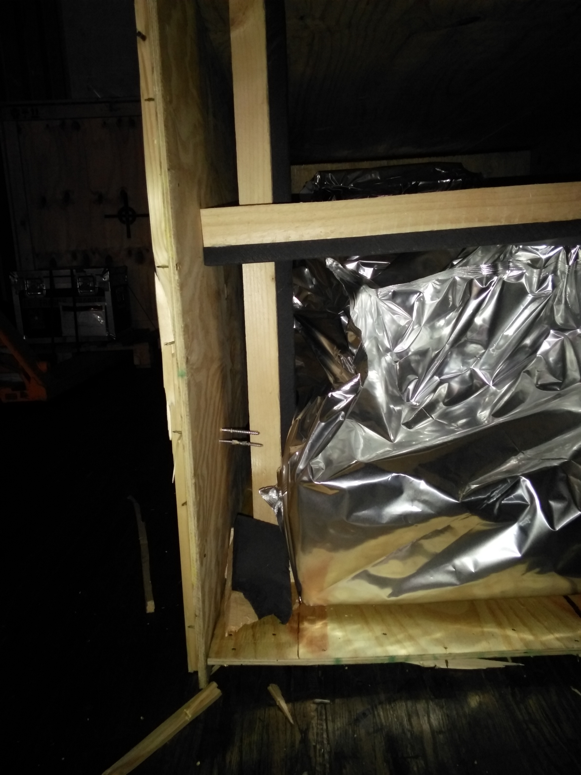 Close up of the damage to the top of the Brem shield crate. (10/48)