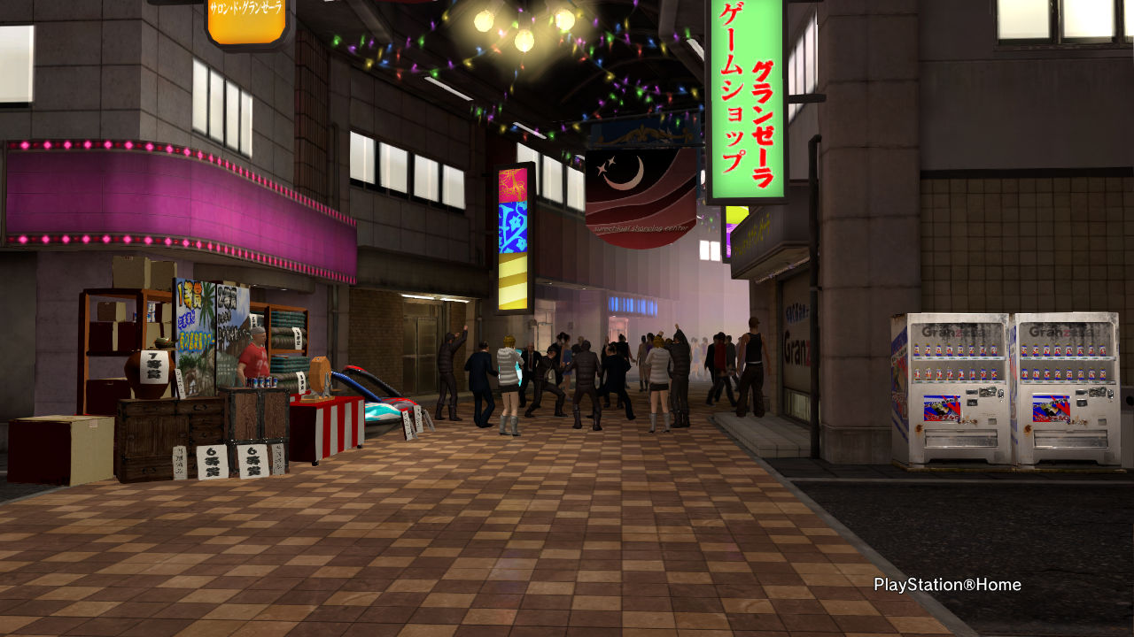 This entire area on the street level reminds me of the Playground in SCEA Home. It has dark alleys that are blocked off by cars and other vehicles and in reality isn’t really that large of a space to wander around in. But it feels bigger than it is because of the open ended street on either side where NPC are standing and moving about. Unlike the Edo village area there is no visible barrier, but it is still there, and this gives more of a feeling that there might be more to come if they expand the space.