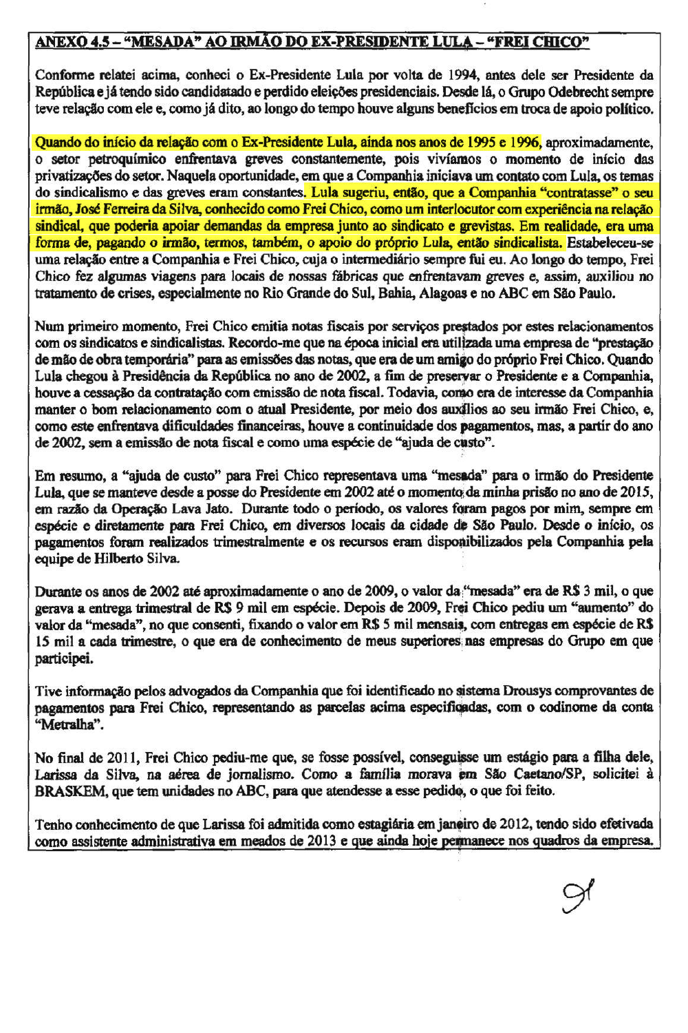 Alexandrino Alencar diz que Lula, nos anos 1990, pediu à Odebrecht a "contratação" do irmão dele, Frei Chico
