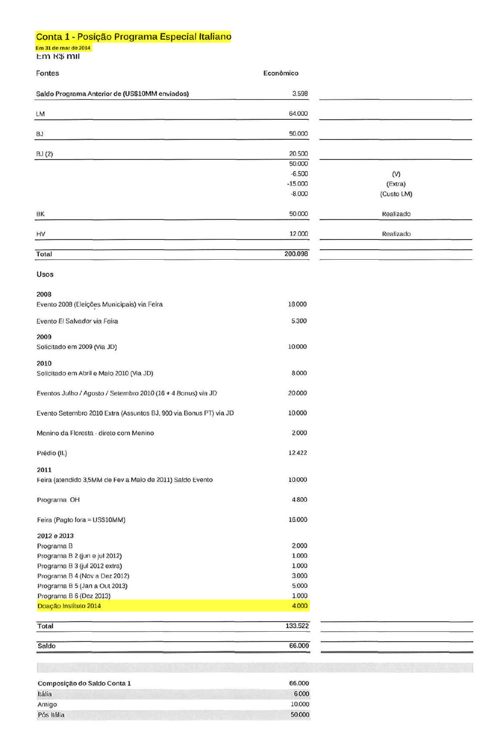 Planilha de propina da Odebrecht registra, em 2014, R$ 4 milhões ao Instituto Lula