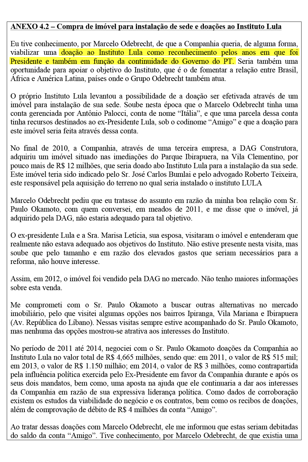 Alexandrino Alencar diz que dinheiro da Odebrecht ao Instituto Lula era contrapartida pelas ações do petista à frente da Presidência e após ela em benefício da empresa