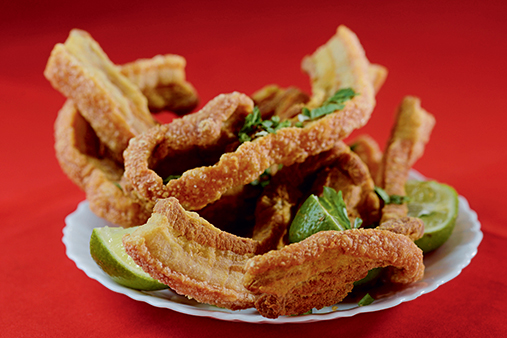 MARCANTE. Porção de torresmo do Bar da Portuguesa. Os petiscos incluem pastéis de camarão, bolinhos de aipim e sardinhas à milanesa