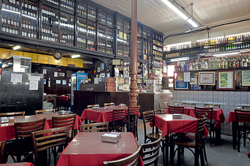 À MODA ANTIGA. As prateleiras, cobertas de bebidas e conservas, têm 110 anos. Omeletes são a especialidade da casa