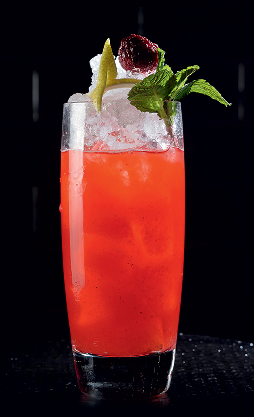 CLÁSSICO. Knickerbocker, feito com rum jamaicano, limão, framboesa, Grand Marnier e bitter. Coquetéis cítricos são destaques no bar