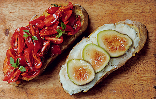 GOURMET. Bruschettas de tomate-cereja com manjericão e queijo de cabra com figos e mel. O bar combina menu italiano, excelentes coquetéis e boa música