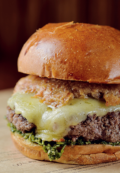 SABOR. Hambúrguer de carne bovina com pesto de agrião, compota de bacon e muçarela. O festival de hambúrgueres faz sucesso nas noites de quinta-feira.