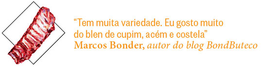 Sabor DOC Uma pequena portinha, misto de loja e bar, no Leblon, tornou-se referência graças aos poucos, mas ótimos, petiscos e sanduíches servidos após as 17 horas, quando mesas se espalham na calçada. As carnes ficam expostas na geladeira, o cliente escolhe, paga o preço do quilo e do preparo, à parte. Ela vem fatiada e suculenta, na tábua, com farofa e chimichurri. Rua Dias Ferreira, 605, Leblon. Tel. 3088-8334.
