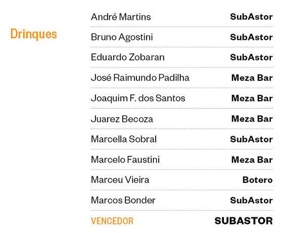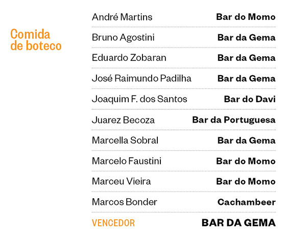 Meza Bar Uma das referências em coquetelaria, tem uma carta de drinques com criações da casa e clássicos com execução precisa. A cozinha não fica para trás. Prove o sanduíche na broa de milho, com costelinha desfiada, cebola-roxa, coentro e pimenta-dedo-de-moça. Rua Capitão Salomão, 69, Humaitá. Tel. 3239-1951. mezabar.com.br