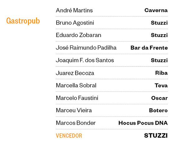 Pub Escondido, CA Aposta na clássica combinação entre búrguers e ales – e lagers também. São 24 torneiras de chope, de rótulos nacionais e importados, de vários estilos. Há búrguers tradicionais e versões com assinatura, como o inconfidentes búrguer, com queijo da Serra da Canastra, bacon feito no melado e couve frita, além de molho com redução de barbecue, picles de pepino e batatinhas rústicas. Rua Aires Saldanha, 98, loja A, Copacabana. Tel. 2522-9800. pubescondidoca.com