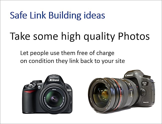 Now the next safe link building idea will horrify some photographers who make a living out of charging for their photos. I give them away for free. I like photography and use photos on all my websites to make the pages visually more attractive. I also use them in every social media post I send out. I started to receive two or three request a week asking if they could copy and use my photographs. It was nice to be asked as these people could easily copy them without sending me an e-mail. I saw the opportunity to promote my websites. I replied to all these requests by saying yes you can copy any of my photographs on one condition that you acknowledge where you got them from by adding a link. People asking to use my Yellowstone National Park photographs from my www.MooreTravelTips.com website would insert them in a blog, social media post or website article on Yellowstone National Park so therefore the link would be relevant.