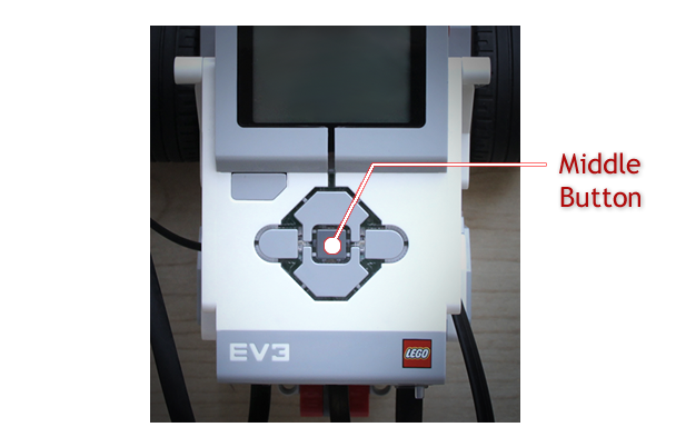 The Wait Block now waits for the middle button on the EV3 to be pressed. |