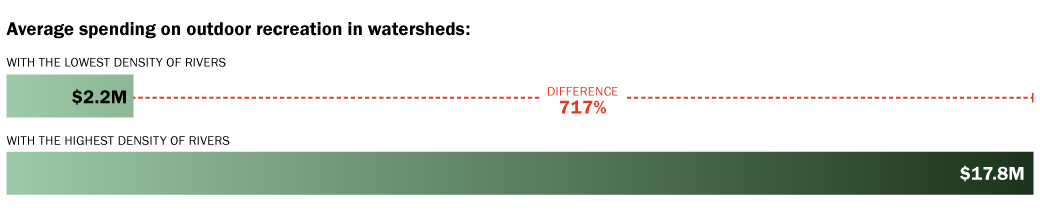 Watersheds with more rivers have 717 percent more spending on outdoor recreation