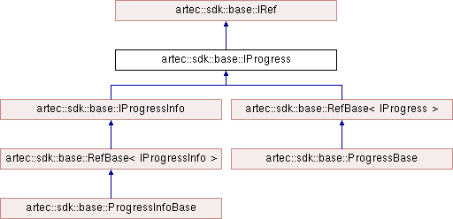 Inheritance diagram for artec::sdk::base::IProgress:Public Member Functions | |