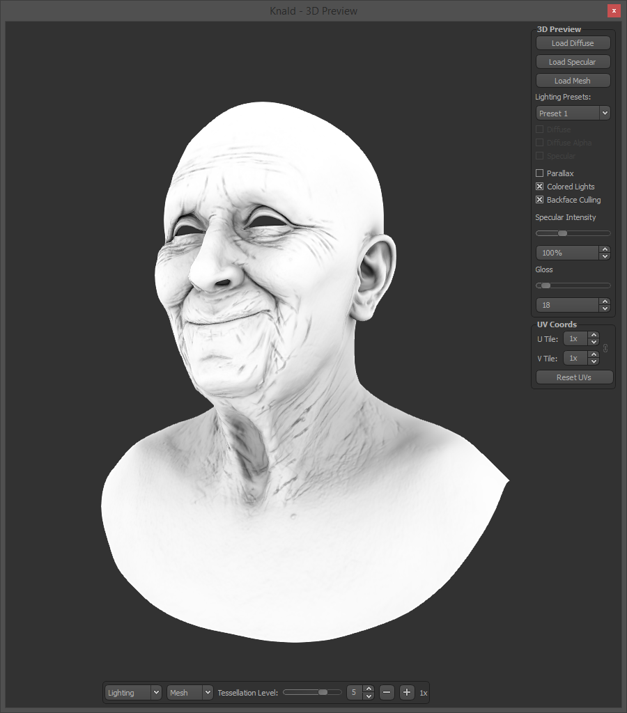 Lighting Presets: This drop down menu allows you to choose between various lighting configurations, with which to better view your results. There are 4 presets to choose from.