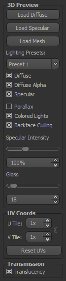 Specular: This toggles the display of an imported Specular texture on/off.