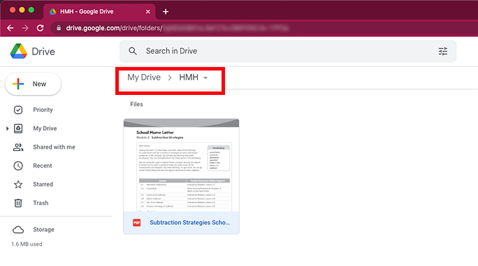 4. View the copied resource in Google Drive by opening the HMH folder.