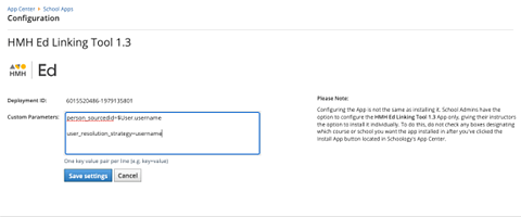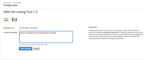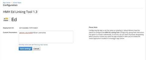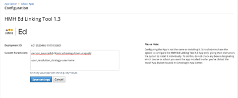 Note: Current courses built with links via the HMH Ed Linking Tool 1.1 app will continue to work as is, but to add new HMH content to those existing courses, the HMH Ed Linking Tool 1.3 app in Schoology must be installed.