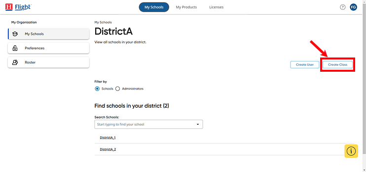 Note: Administrators imported using Flight Rostering Service can be set up without rostering rights, which restricts their access to rostering functions, such as adding and editing user accounts and classes and managing preferences. If you do not see these options in Flight and require this access, you must consult with your district rostering administrator for assistance.