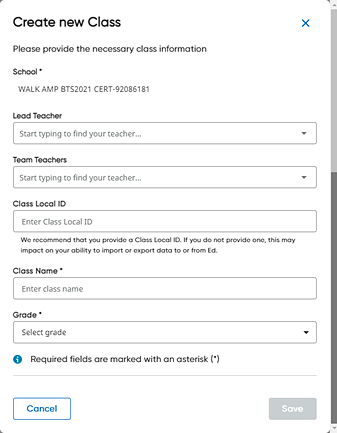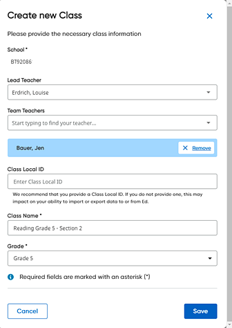 ➔ Select a lead teacher from the list or begin typing the teacher name and then select the teacher from the list. Only one lead teacher is allowed for a class. |